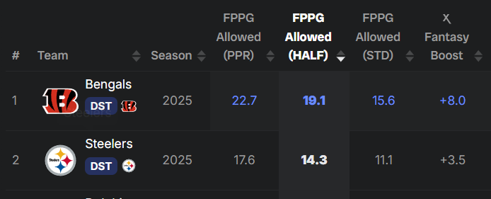 They give up the biggest fantasy boost to opposing TDs by a wide margināmore than 5 points per game than the next worst team (the one he just lit up like a Christmas tree):